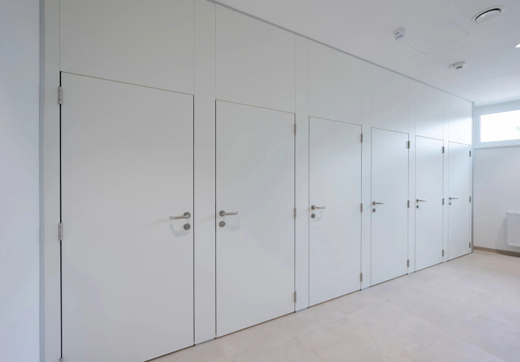 Die SaniWall-AluSoft Trennwände bieten eine elegante und dezente Lösung für Sanitär- und Umkleidebereiche. Das hochwertige Trennwandsystem kombiniert stabile Aluminiumprofile mit melaminharzbeschichteten Spanplatten – wahlweise in zahlreichen Farben und Dekoren, passend zu jedem Raumkonzept.