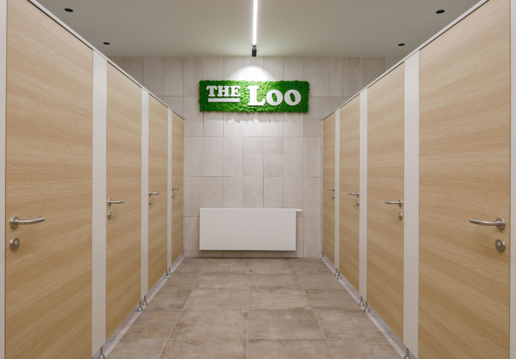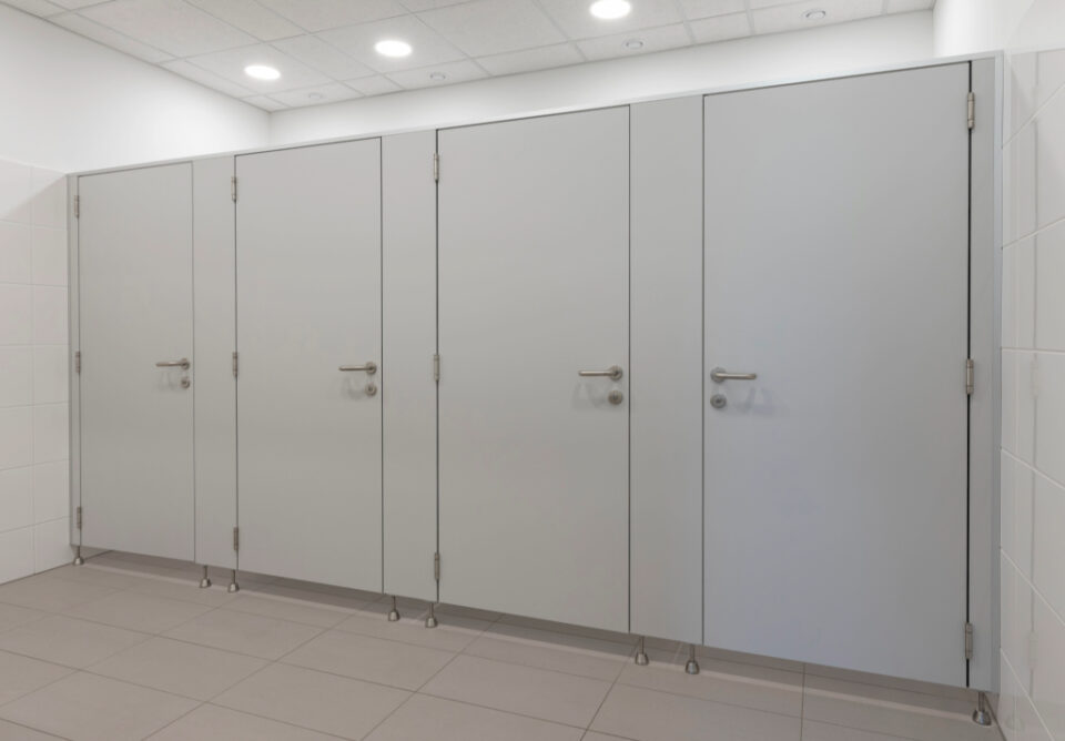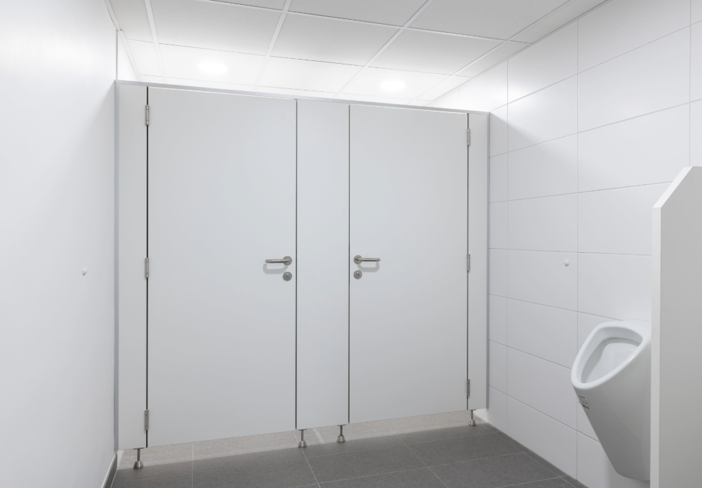 Dank einer grossen Auswahl an Farben und Dekoren lassen sich die WC-Trennwände flexibel an individuelle Gestaltungswünsche anpassen – Mit verstellbaren Stahlfüssen und stabilen U-Profilen gelingt der Aufbau besonders effizient – auch bei umfangreichen Kabinenanlagen.
